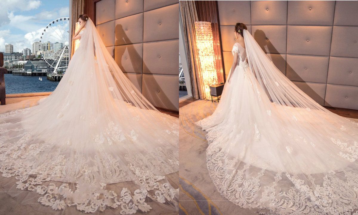 Großhandel Vollapplikation Kathedrale Schleier Lange Brautschleier ...